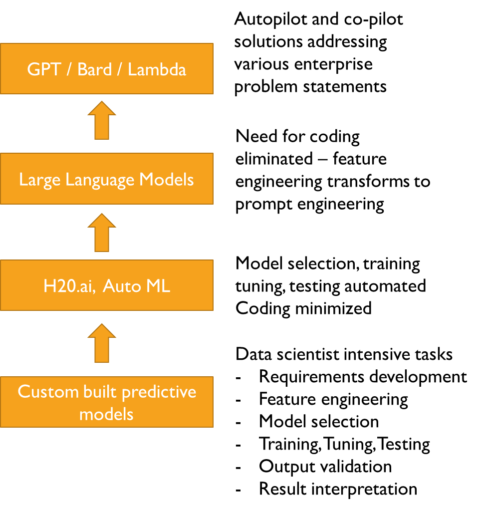 Data science methods, tools and technologies have evolved in recent times yielding benefits in productivity in analytical model development. Skill and entry barriers to the analytics profession have also been progressively lowered, as depicted below.