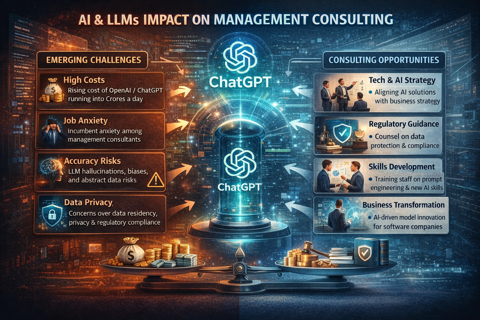 Having highlighted some of the benefits of LLMs, let us look at the emerging challenges. Along with rising costs of OpenAI / ChatGPT (estimated more than Rs. 5 crore a day), challenges include dealing with hallucinations in abstract summarization, generative question answering and general data generation. Cognitive biases influence AI solution design and can cause unintended effects such as in perpetuating current levels of sensitivities towards inclusiveness and diversity which organizations seek to improve on. The data privacy, data residency and protection implications of training LLMs with data exposed in the public domain is the subject of debate and regulation such as in India’s DPDP act.